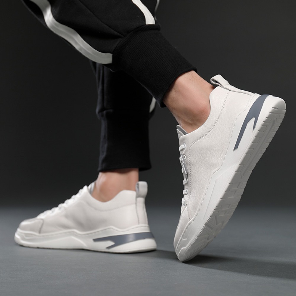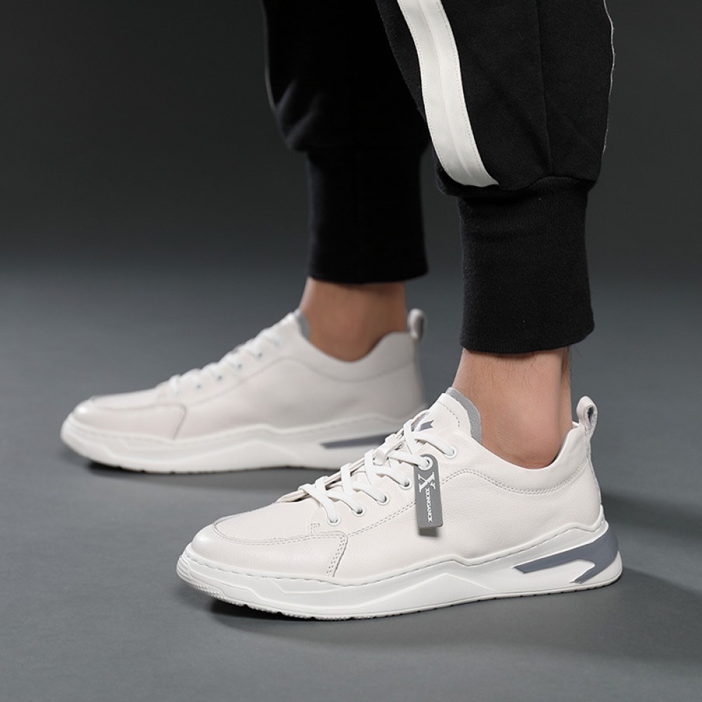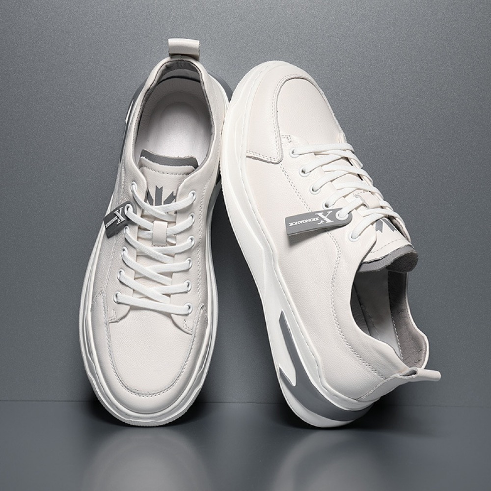 Sports Shoes Men's Spring New Trendy Shoes Leather Casual Style Men's Shoes White