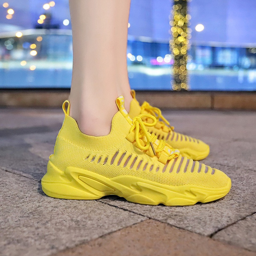 Summer and Autumn New Sports Shoes Female Flying Woven Student Running Shoes Breathable Socks Shoes Women