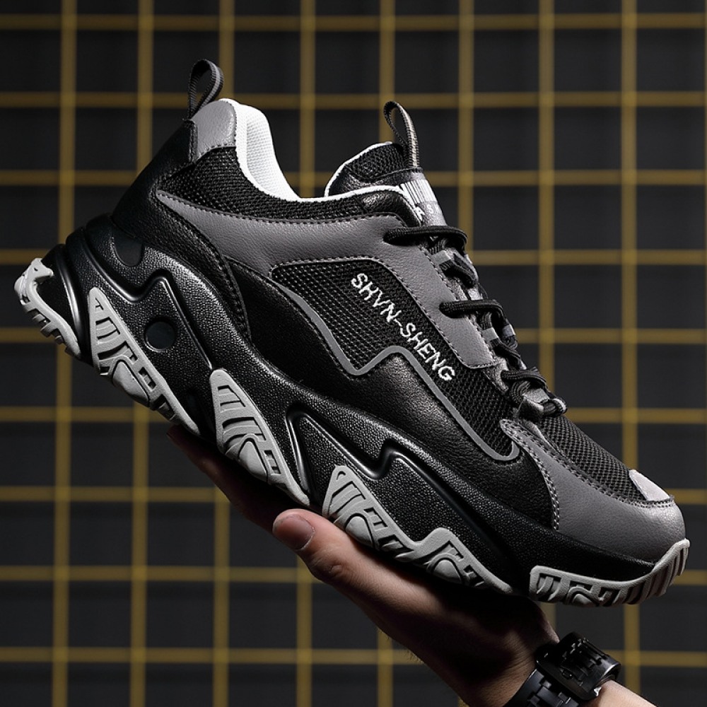 New Men's Casual High-Top Sneakers Stitching Trend Thick-Soled Inner Increase Warmth Running Shoes