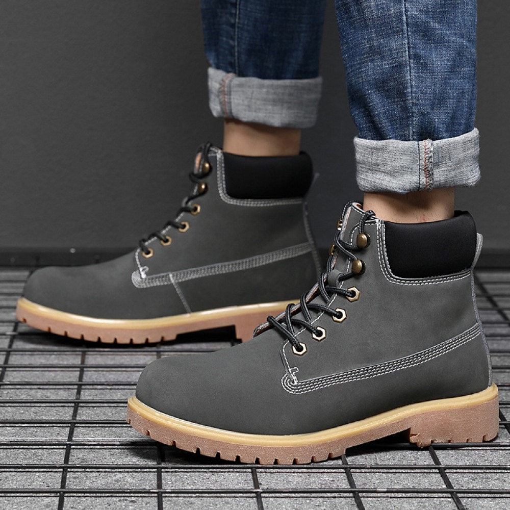 Martin Boots Men's British Style Tooling Boots Mens Autumn Trend High-Top Shoes Casual Breathable Short Boots