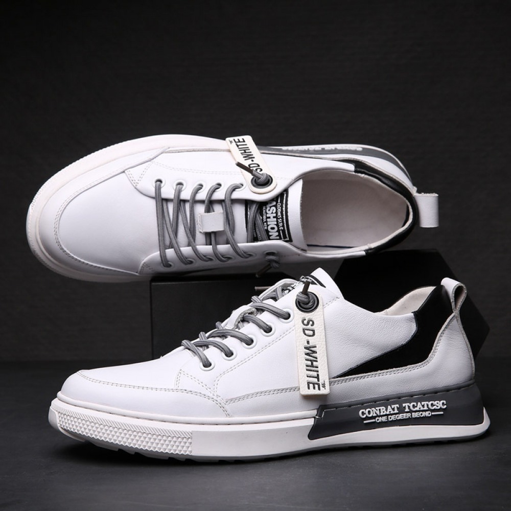Men's Leather Board Shoes Trendy White Casual Shoes